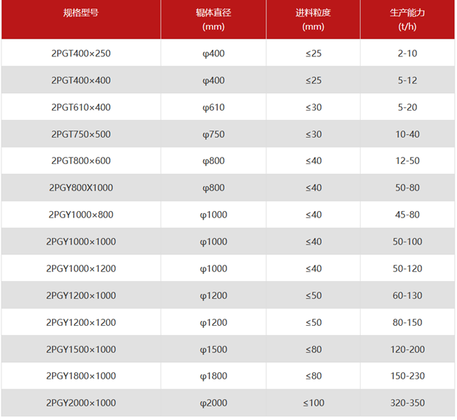 對輥破碎機技術參數