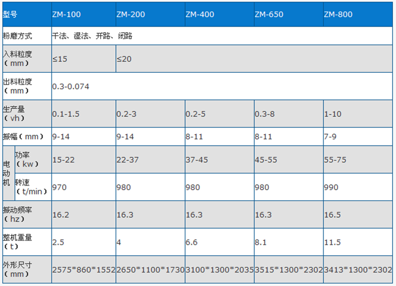 振動球磨機(jī)技術(shù)參數(shù)